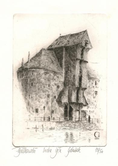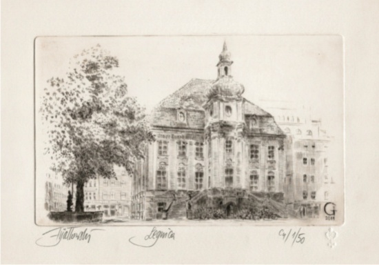 Grzegorz Fijałkowski. Wykonuję miedzioryty /sucha igła/ miast z kart pocztowych i zdjęć na zamówienie.Z jednej matrycy można otrzymać do 50 szt. odbitek.